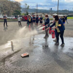 計画に沿って災害対策本部設置から行いました。情報伝達訓練では、各行政区からの被害状況を報告し、一連の流れを確認しました。実技訓練は、北上消防署村崎野分署の署員のご指導頂き、担架の運び方、消火器の使い方、消し方、AEDの操作のし方、電極パットの貼り方など具体的に教えて頂きました。初めて参加した中学生は、「良い経験になった。災害時には地域の人と出来る事をやっていきたい」と感想を述べました。