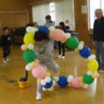 最後は、輪になった風船を縄跳びのように飛び越え元気な子供たちの声がホールに響いていました。
